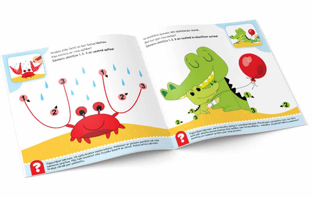Pirmojoje knygelėje mažylis prisimins kaip jungti skaičius didėjimo tvarka. Knygelėje skaičiai sudėlioti įvairiomis kryptimis, kad užduotys palaipsniui sunkėtų.